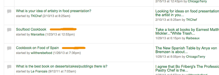 The internet is full of places to gather information, this took me 10 minutes and I got some good ideas. The deeper you dig the more you find. Spend an hour or two looking and you could strike gold. One thing I noticed in the cooking niche is that 90% of the people on forums are looking for cooking books. Set up an Amazon store and you could do well in a niche like this.